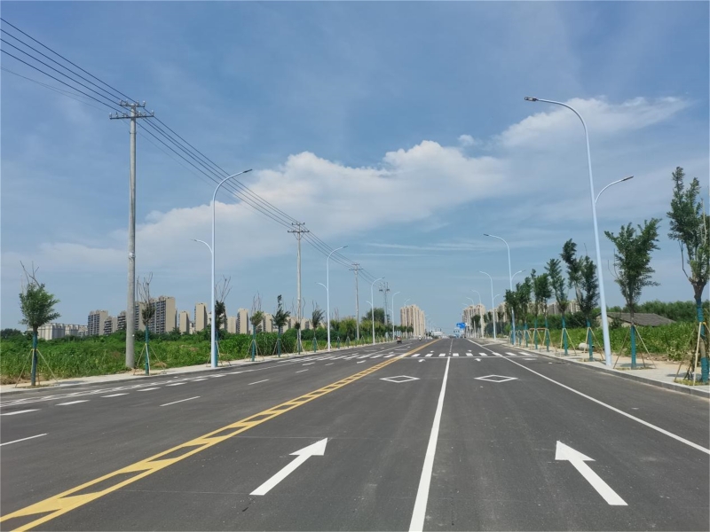 该项目位于安徽省阜阳界首市东城科技园铁北片区,属于综合性市政工程。道路全长 3050米,规划红线宽度为25米,道路等级为城市支路,双向4车道,设计车速为每小时40公里。公司承担了项目的道路工程、给排水工程、桥梁工程、通信照明工程、景观绿化工程、交通监控及附属配套设施等内容,于2021年3月20开工建设,项目完成历时20个月。