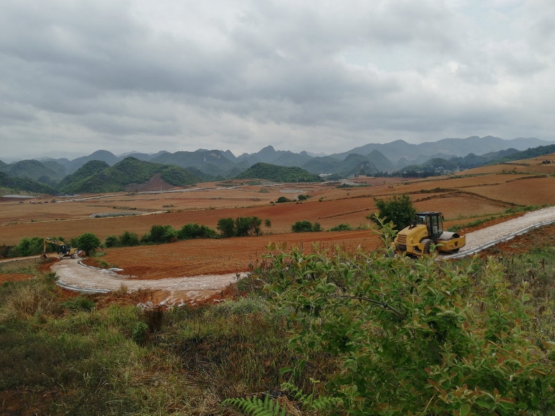 施工机械来往穿梭在田间,工人们忙碌有序,现场一派热火朝天的景象。在丫科革片区,现场负责人黄云忠介绍了项目16公里机耕路和沟渠施工建设情况。